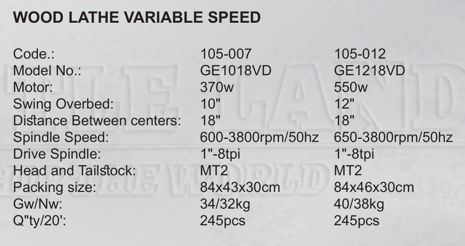 WOOD LATHE VARIABLE SPEED WITH STAND